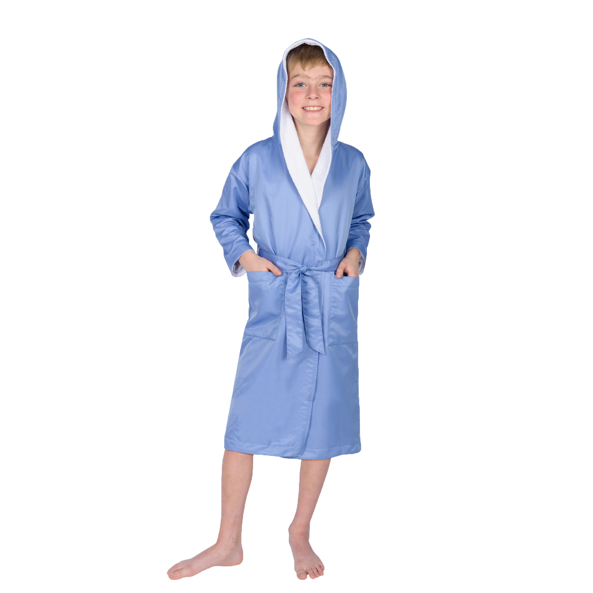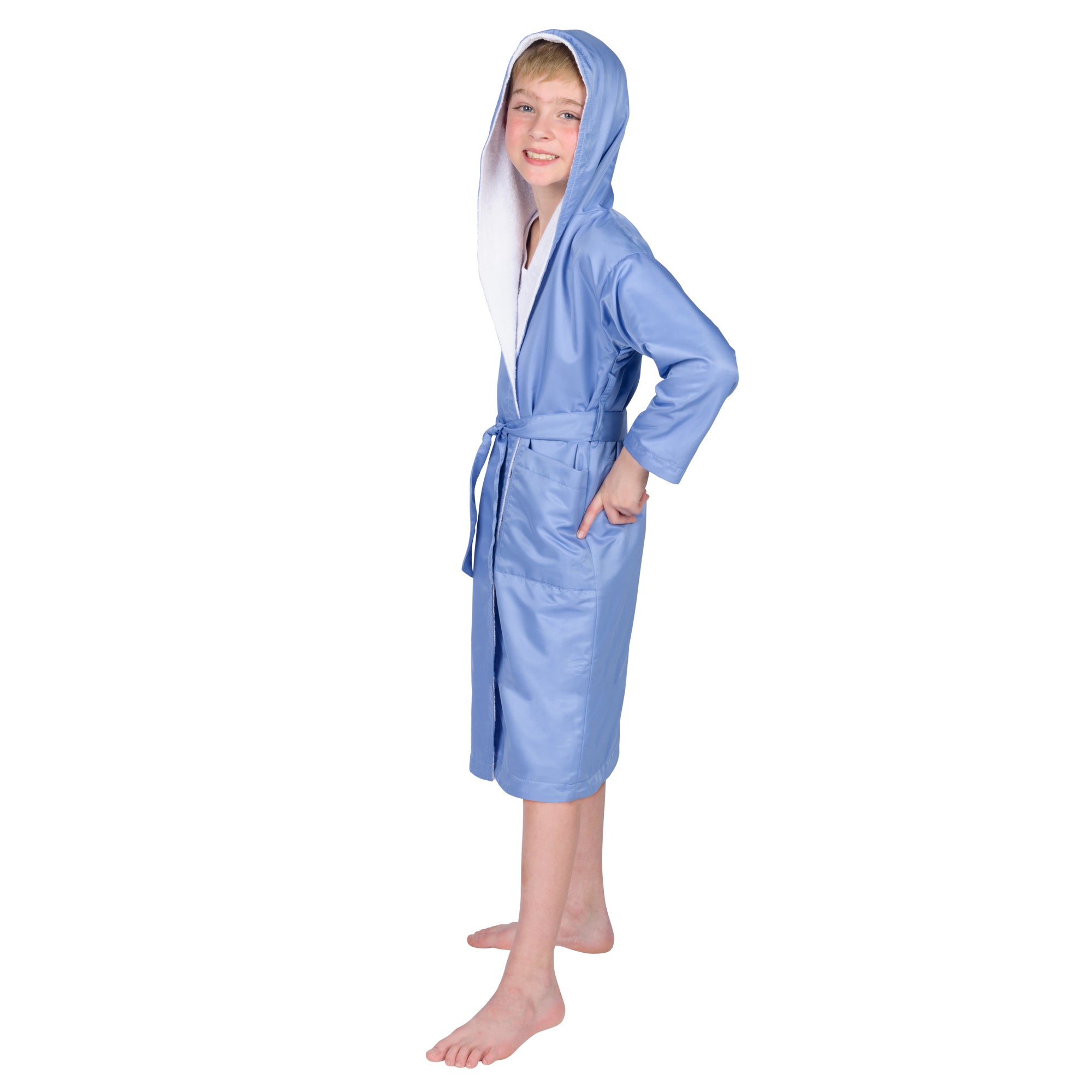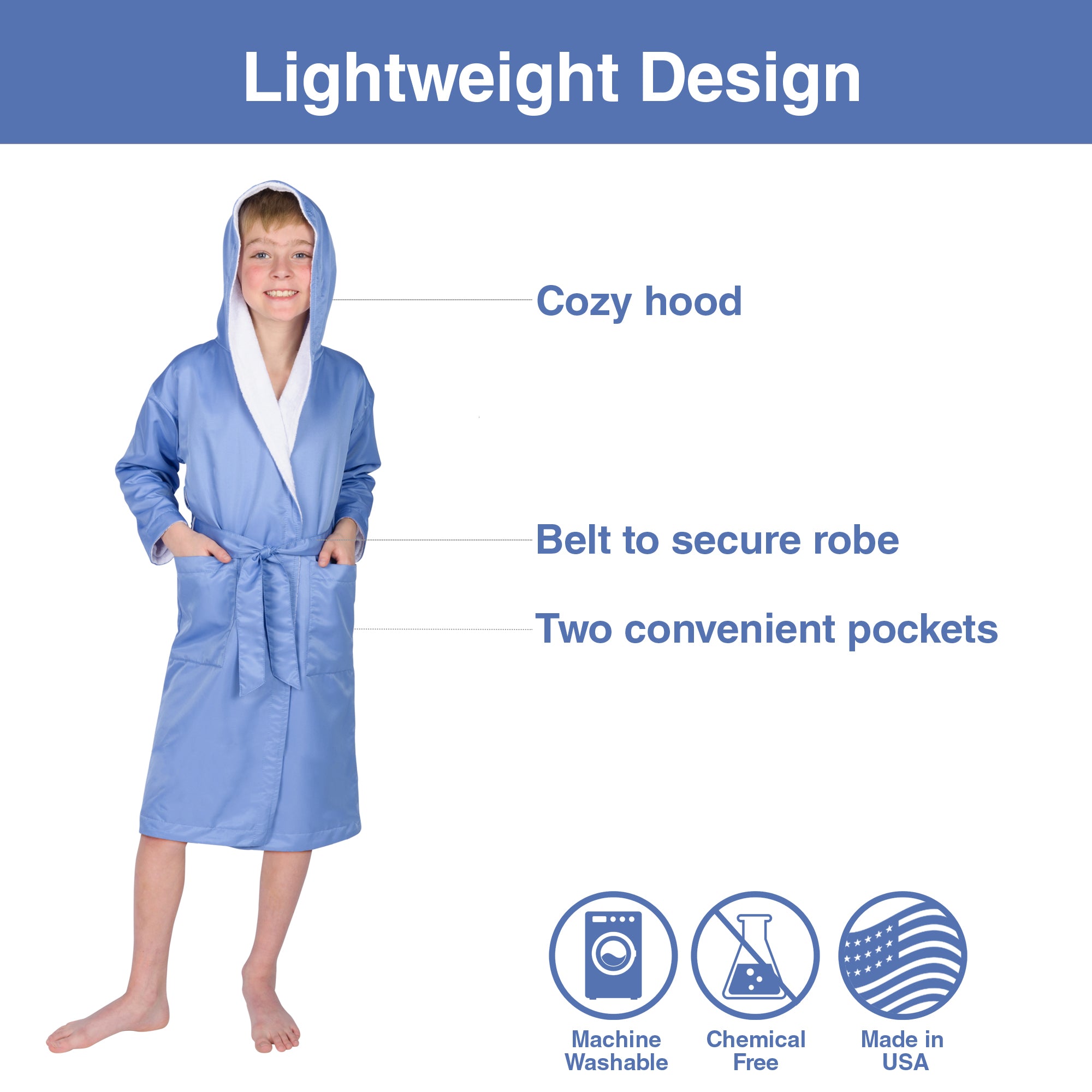 ComfyDown Kids Luxury Blue Hooded Bathrobe for Boys - Soft, Plush - Made in USA