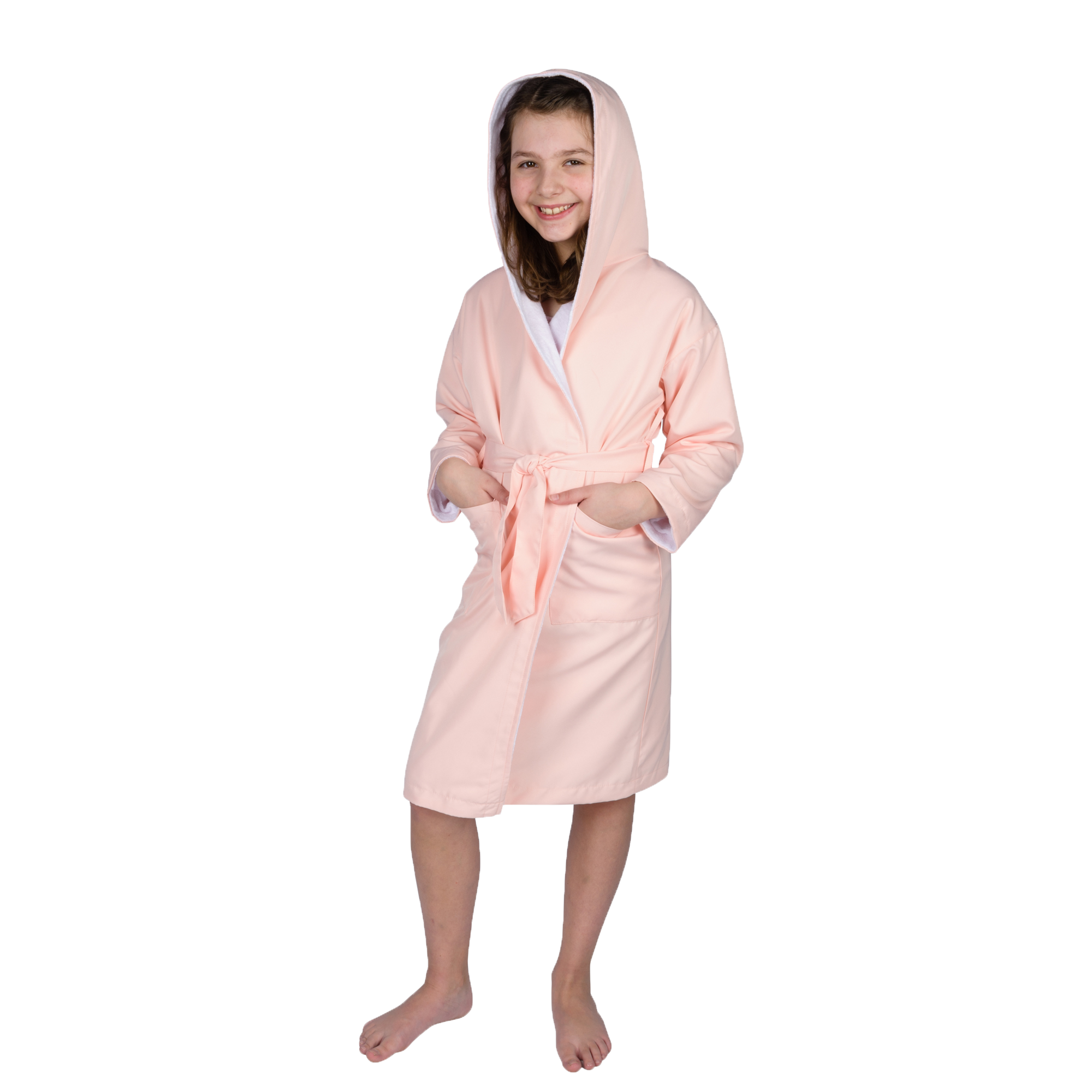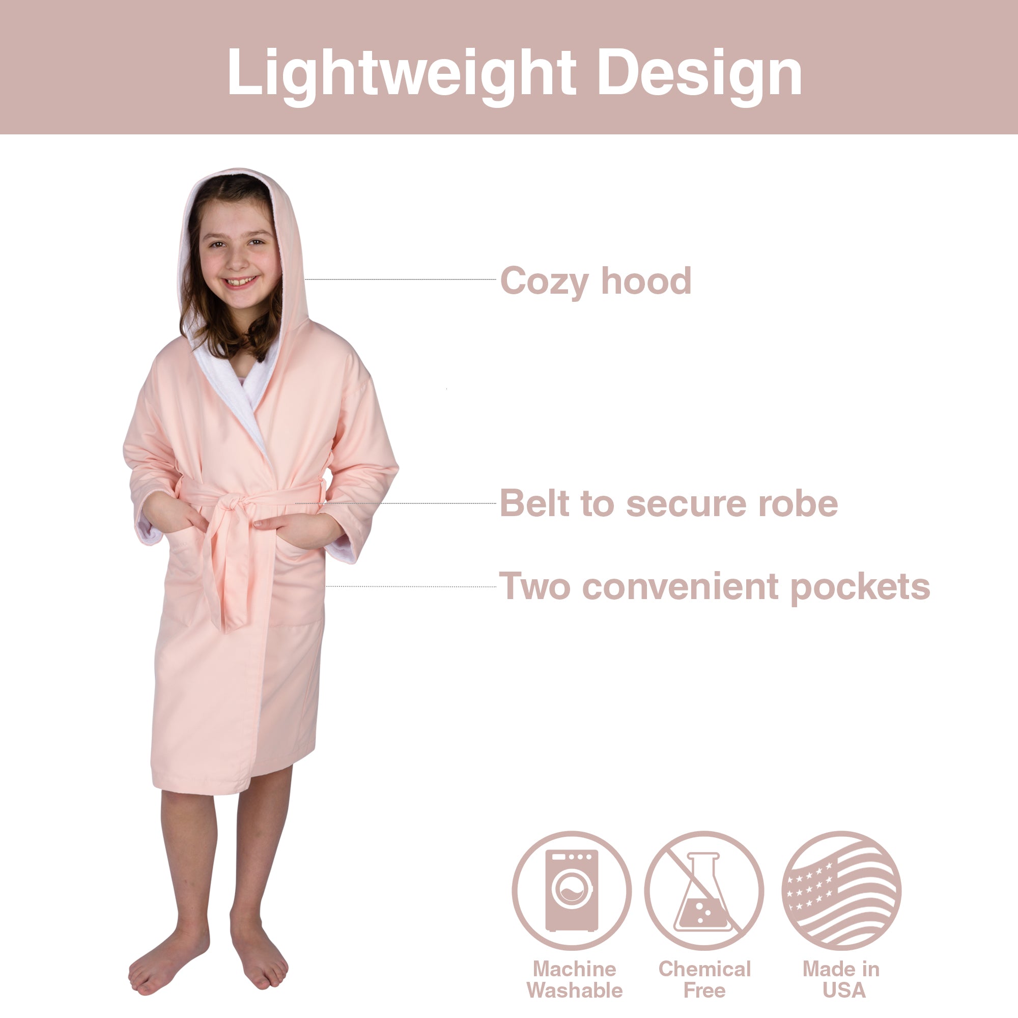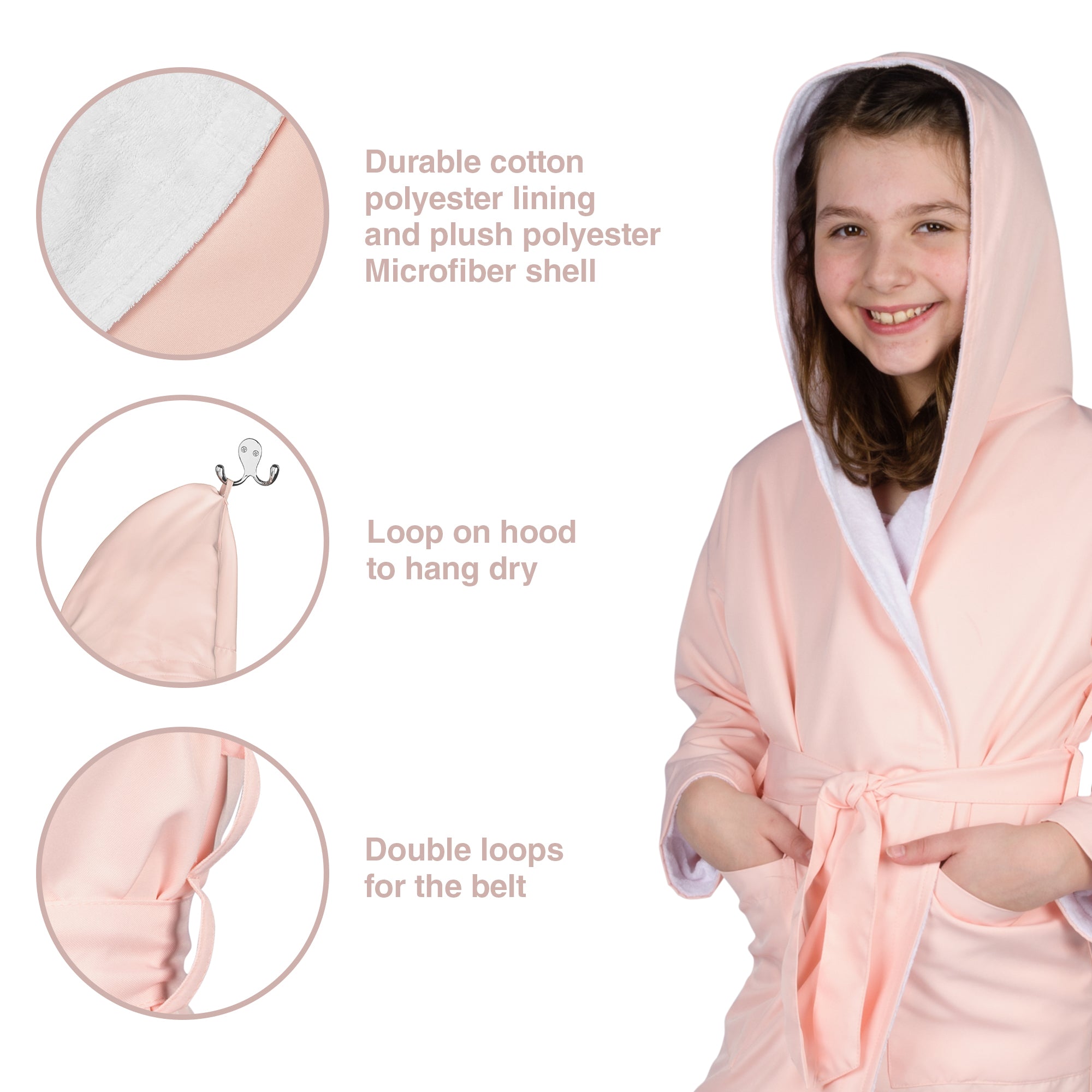 ComfyDown Kids Luxury Pink Hooded Bathrobe for Girls- Soft, Plush - Made in USA
